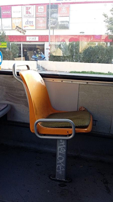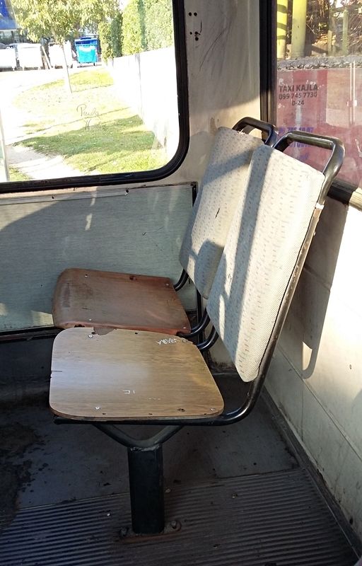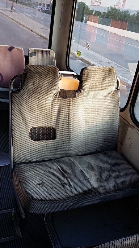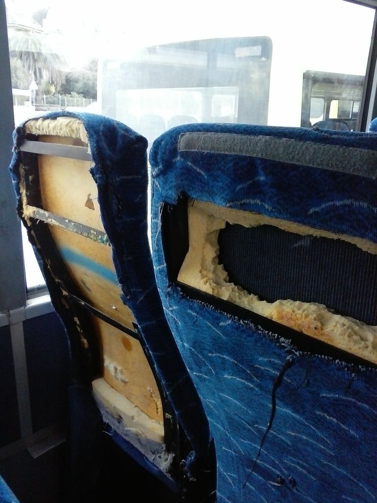 Osim što su sjedišta sama po sebi boležljiva jer ovi tapecirung nema drvenu postavu nego je samo naslonjen na spužvu (a između je šupljina) postoji i veliki problem sa mehanizmima za spuštanje i razmicanje sjedala koji su skroz razvaljeni tako da je i svako sjedalo razvaljeno (svaki naslon stoji drugačije). Plus, nekužim čemu služe pojasevi u ovim autobusima koji su razvučeni po podu ili su zaglavljeni....