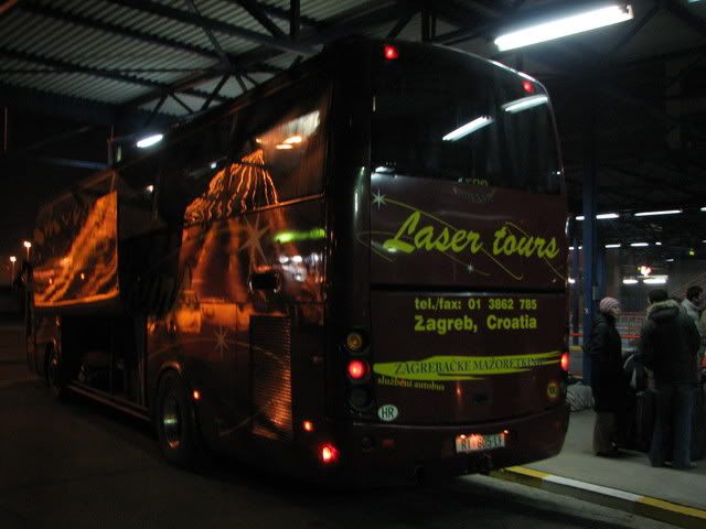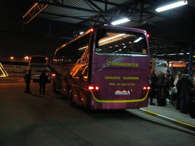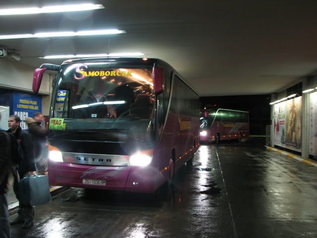 ja sam došao pola sata ranije te moj bus još nije bio na peronu jer je drugi bus kasnio u polasku za prag, a taj drugi bus je bio od lasera iz rijeke(imao je rijećke tablice iako je na busu pisalo zagreb) na kojem je još pisalo i zagrebaćke mažoretkinje