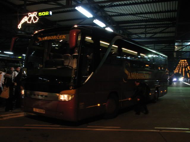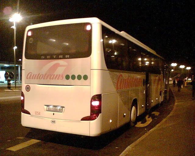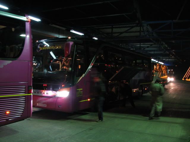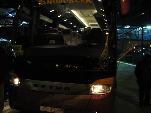 došli smo nakon noćne vožnje u 6.00 sati, nije bilo nikakvih problema putem. autobus je vrhunski, ali morao bih dodati da bi idealno za ovako duga putovanja bio bus sa jednim redom sjedala manje, jer 9 i pol sati vožnje treba izdržati. bus je imao 49 sjedala, 44 bi bilo idealno. uglavnom sve u svemu prag treba vidjeti