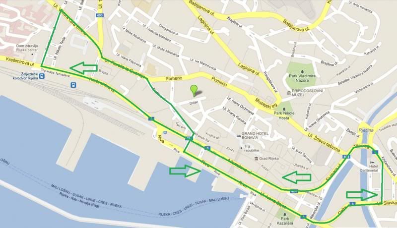 ŠET.A.K.MIOŠIĆA-Cindrićeva-Strossmayerova-Titov Trg-Fiumara-TBJ-Scarpina-Adamićeva-Jadranski Trg-Trpimirova-Žabica-Krešimirova-Cambierieva-V.Cara-Emina-Fiorello La Guardia-Ciottina-Erazma Barčića-Frana Kurelca-Supilova-Ž-Fašizma-Šupićeva-ŠET.A.K.Miošića.