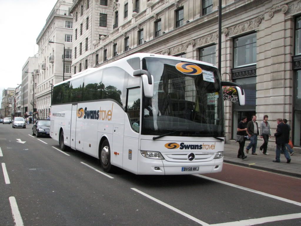 A to je Mercedes Touro, ima ih gore ko u priči i prilično je popularan turistički bus u Eng. Budući da izgleda kao Tourino, pretpostavljam da je proizvođač Caetano koji je u Eng. jako popularan